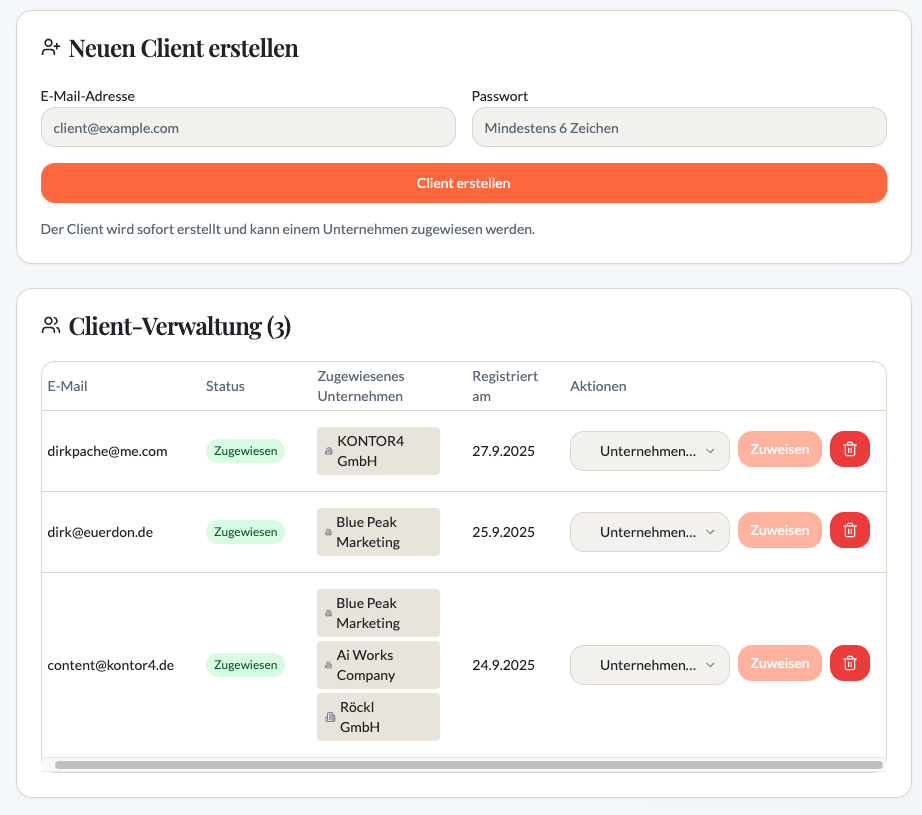 Sie betreuen 10 Kunden. Das sind 30 Excel-Downloads pro Monat. Etwa 60 Stunden nur für Datenaufbereitung – keine Analyse, keine Strategie, nur Copy-Paste.