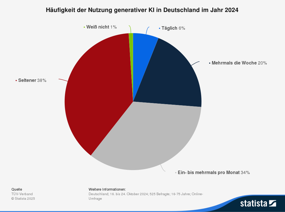 In Statista. Zugriff am 11. Juli 2025, von https://de.statista.com/statistik/daten/studie/1538331/umfrage/haeufigkeit-der-nutzung-generativer-ki/