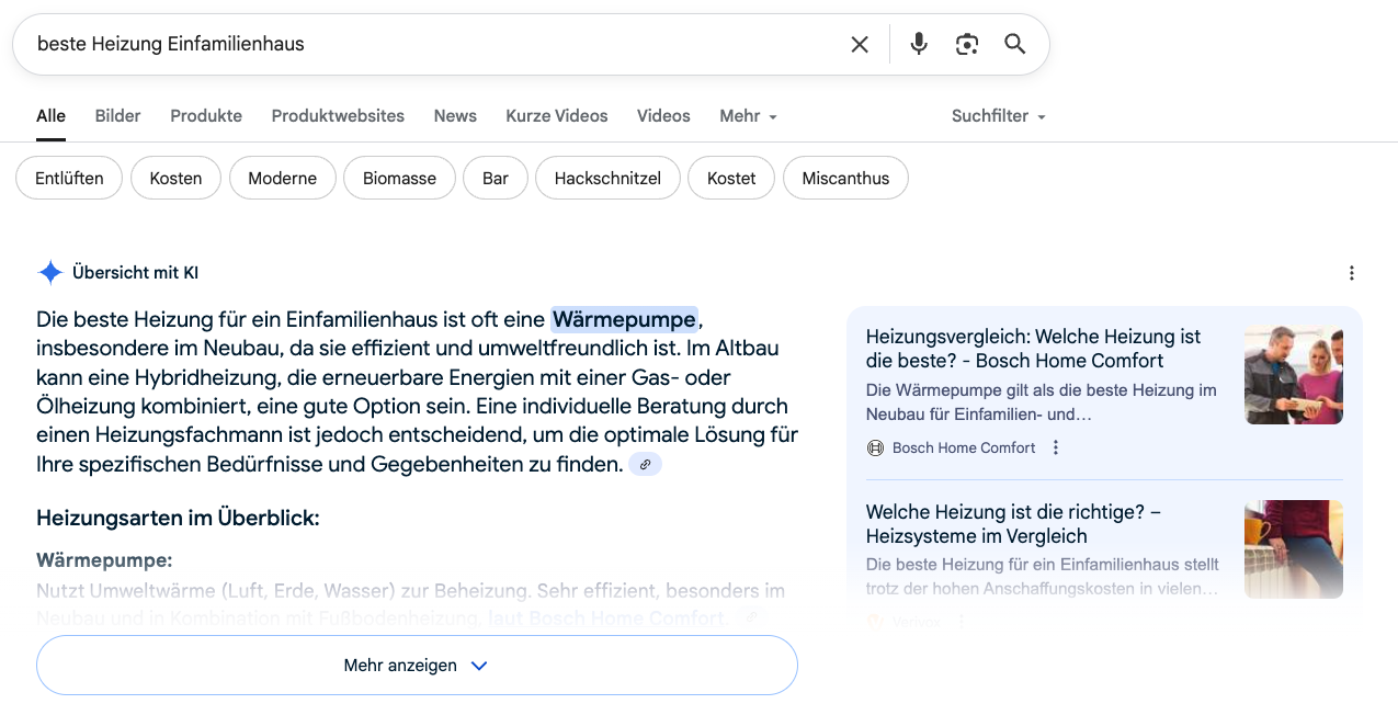 Google-Suche: "beste Heizung Einfamilienhaus"