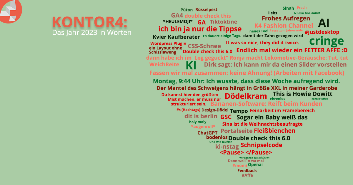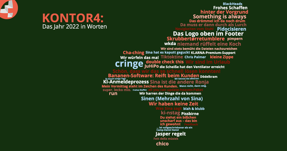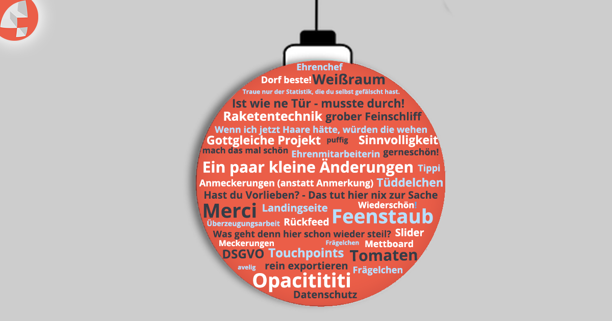 Auch 2025 haben wir fleißig "Bonmots" aus unserem Agenturalltag festgehalten. Diese kommen von uns, Kund:innen, Partner:innen, Kolleg:innen, dem Hausmeister, der Reinigungskraft, externen Mitarbeiter:innen, dem Steuerberater, Praktikant:innen, Facebook-Buddies, realen Buddies – kurzum: einer ganzen Menge Leute.